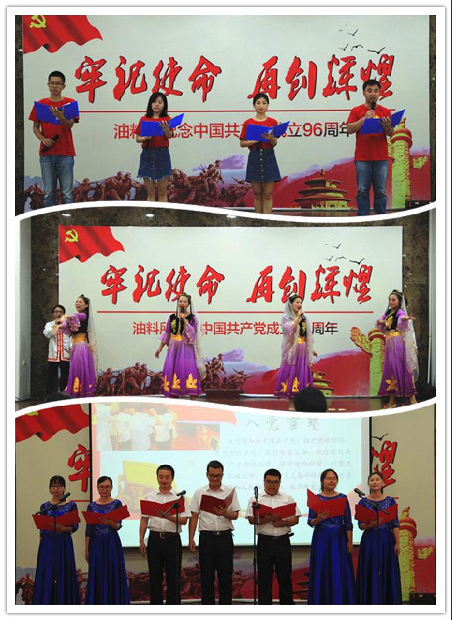 6月29日,我所200多名干部群众集聚一堂,为庆祝中国共产党成立96周年,献上了一场精彩的视听盛会。在家所领导赵长军书记、副所长廖星、黄凤洪、张学昆出席活动,刘磊、原喆主持演出活动。