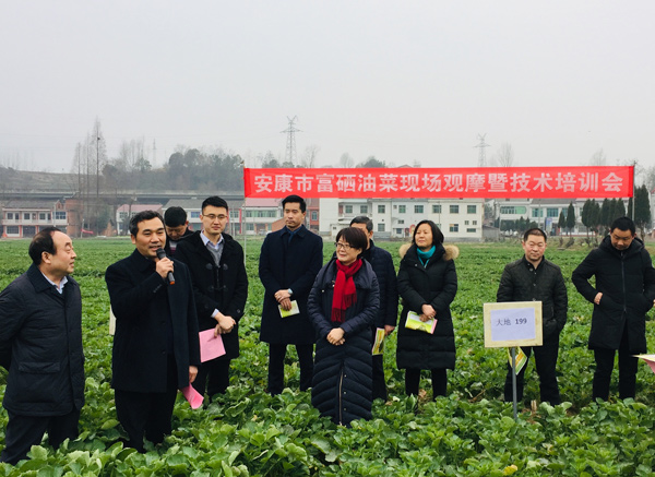 2月20-21日,中国富硒产业研究院富硒油菜科研创新团队2019年度工作推进会在安康召开,对2018年工作进行了回顾并开展了标准化富硒油菜基地建设、富硒油菜新品种示范、缓释肥效果试验和油菜轻简化栽培等技术成果的现场观摩。油料所所长、富硒油菜科研创新团队首席专家黄凤洪出席会议并讲话。