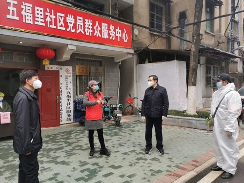 在五福里社区,油料所下沉工作组组长、副所长张银波和五福里社区负责人向黄凤洪一行介绍了工作组防控工作情况。黄凤洪对工作组服从社区安排,勇于担当奉献给予了充分肯定,叮嘱他们加强自我安全防护,希望他们进一步提高政治站位,认真按照中央、部院党组和省市工作部署,坚持疫情防控一盘棋,全身心投入到社区疫情防控工作中,服从社区统一管理、统一调度、统一安排,积极作为,勇当先锋,做好社区的排查员、守门员、代购员,为早日战胜疫情作出贡献。
