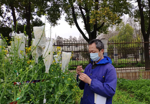 由于时间紧、任务重,他们身兼数职,每个人都要承担去杂、套袋、套帐、调查、拍照等过去多人协同完成的任务,工作量是以往的二三十倍。油菜杂优课题组刘佳博士的父亲疫情期间因病去世,他不忘创新使命担当,顽强坚守武昌试验基地一线,连续工作10余天,高效的完成了140多份核心株系的去杂套袋和田间种质创新试验。